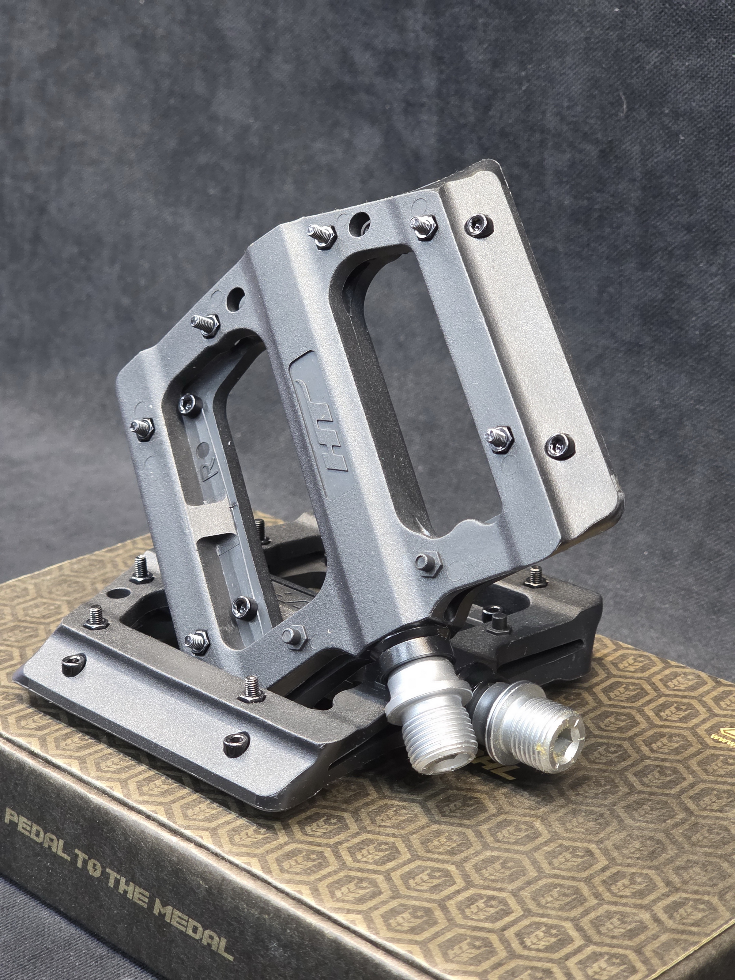 Низкопрофильные педали-платформы HT PA12A. Изготовлены из прочного и стойкого к ударам армированного нейлона. Ось педалей выполнена из жесткого хром-молибденового (Cro-Mo) сплава. Применение в конструкции закрытых герметичных промышленных подшипников обеспечивает плавный ход, а также долгий срок службы.