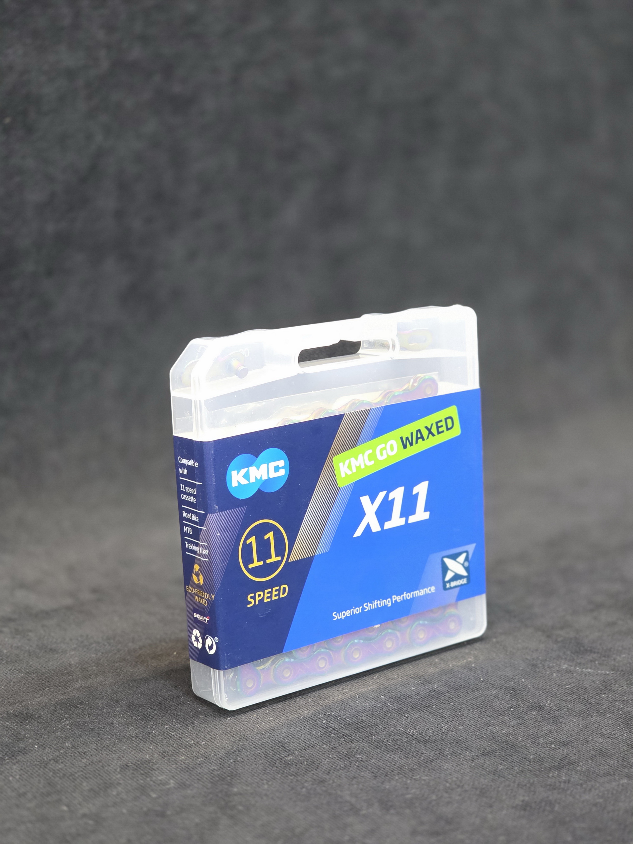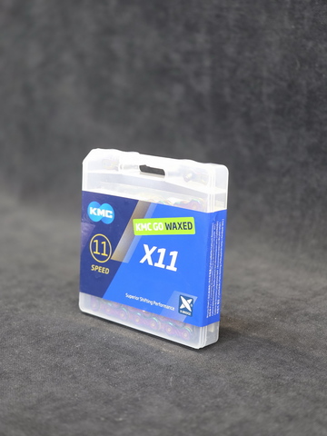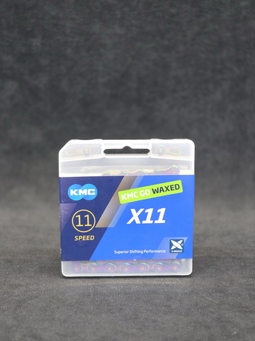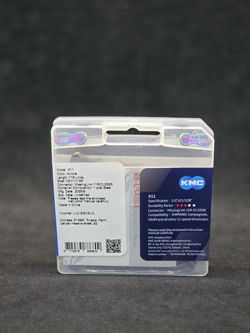 Цепь велосипедная KMC X11 Aurora Blue Waxed, с парафиновой смазкой, 11 скоростей, 118 звеньев, с замочком MissingLink 11R/CL555R в комплекте