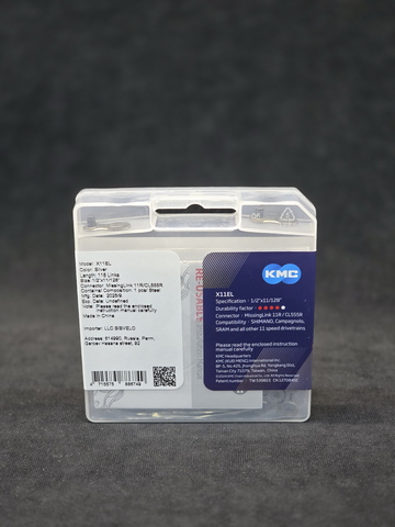 Цепь велосипедная KMC X11EL Silver Waxed, с парафиновой смазкой, 11 скоростей, 118 звеньев, с замочком MissingLink 11R/CL555R в комплекте